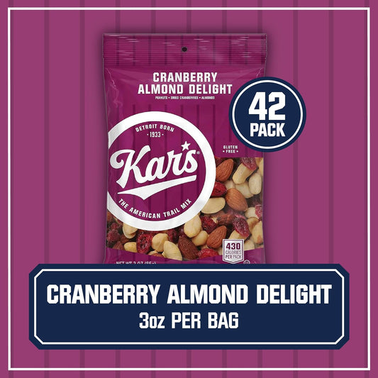 Kar’S Nuts Cranberry Almond Delight Trail Mix, 3 Oz Individual Snack Packs - Bulk Pack of 42, Gluten-Free Snack Mix